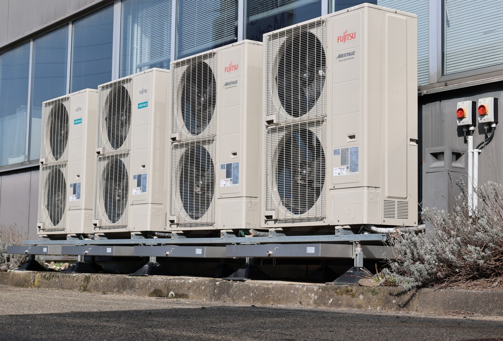 Die Außengeräte wurden mit einem Bigfoot-System aufgestellt. Zusätzlich wurden Ölwannen installiert, um den Wasserschutz nach aktuellen Vorschriften zu gewährleisten.