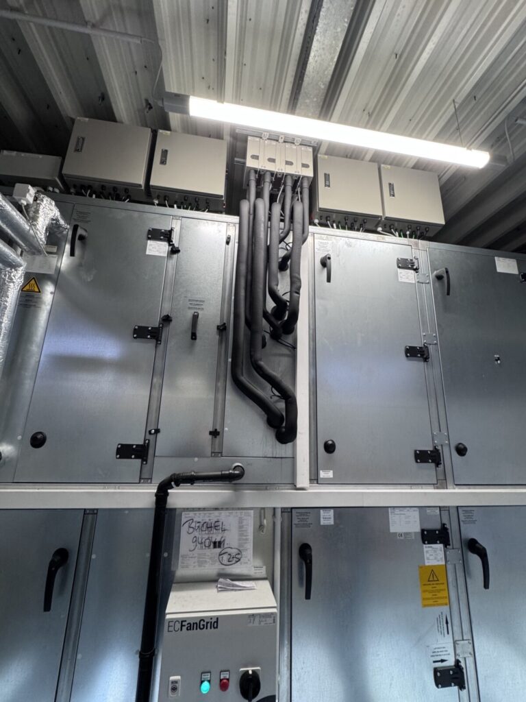 In Zusammenarbeit mit einem RLT-Anlagenbauer wurde ein passendes Kühlregister ausgelegt. Die Kälteversorgung übernahmen wir und setzten dabei auf ein Kaskadenmodul, um die Leistung gleichmäßig auf vier Anlagen zu verteilen.